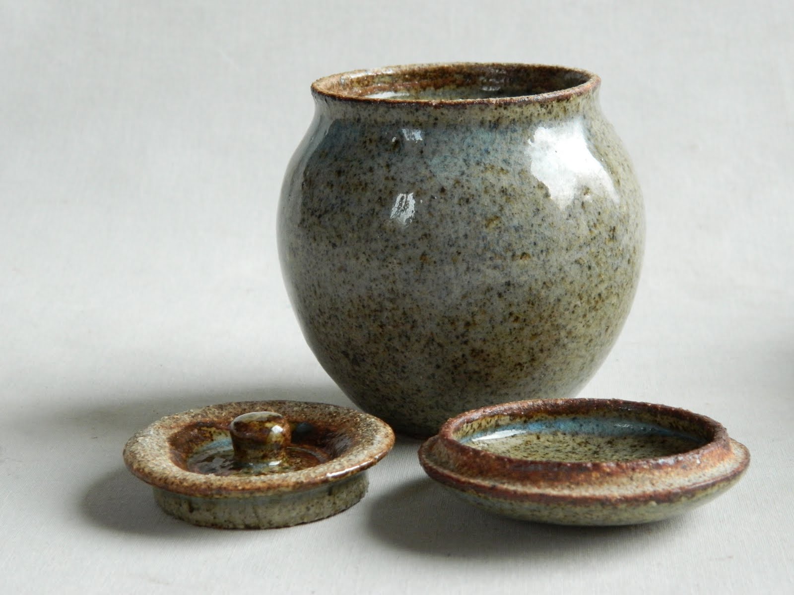 Unloaded from kiln on March 12. 2012. Double lidded tea caddy made from iron rich, stoneware clay and glazed with Nuka glaze (wood ash, silica, feldspar). It can hold 240ml.